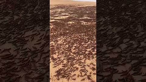 وثَّق مقطع فيديو، تداوله رواد موقع التواصل الاجتماعي «تويتر»، لحظة افتراش أسراب ضخمة من الجراد، الأرض، في الأحساء؛ حتى إنه كاد يغطيها تمامًا، ويواجه سكان المملكة واليمن، غزو أسراب ضخمة من الجراد مكونة من نحو 360 مليار حشرة؛ يمكن أن تسد الشمس في بعض الأحيان.