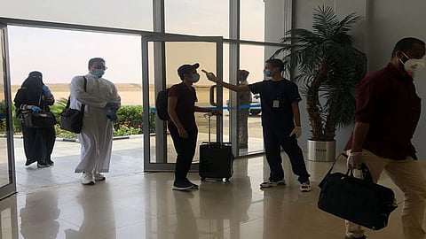 وتنفّذ الإدارات العاملة بالمطار، جميع الإجراءات الوقائية المتخذة في مطارات المملكة عند الوصول، من خلال الالتزام بالنزول التدريجي للركاب من الطائرة، واستخدام 50% فقط من الطاقة التشغيلية للحافلات.