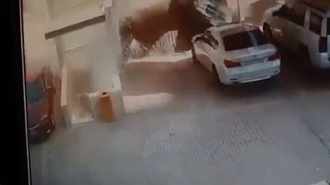 وكان فيديو قد تم تداوله عند وقوع الحادث، يظهر خلاله أحد العاملين بالمركز وقد أنقذته العناية الإلهية؛ وذلك بعد أن حدث الانهيار أثناء نزوله من الدرج، إلا أنه لم يُصَب بأذًى.