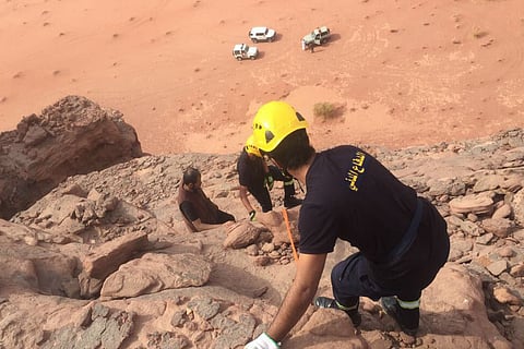 تمكَّن رجال حرس الحدود والدفاع المدني، اليوم الجمعة، من إنقاذ مواطن سقط من أعلى أحد المرتفعات الصخرية في مركز الشبعان بمحافظة تبوك.