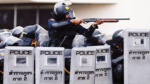 استخدمت السلطات التايلاندية خراطيم المياه والغاز المسيل للدموع والرصاص المطاطي اليوم السبت، فيما احتشد المتظاهرون المؤيدون للديمقراطية بالقرب من القصر الكبير في بانكوك.