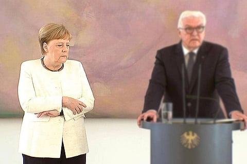 وارتجفت ميركل أمس الأربعاء، بينما كانت تقف بجانب رئيس الوزراء الفنلندي أنتي ريني خلال استعراض حرس الشرف لدى وصوله. وأثناء لقائها بالرئيس الأوكراني فولوديمير زيلينسكي يوم 18 يونيو الماضي، قالت إنها شعرت بتحسن بعد شرب بعض الماء. ولم يقدم مكتب ميركل تفسيرًا لنوبات الارتعاش التي تصيبها مما أثار تكهنات في وسائل الإعلام الألمانية عن السبب. وليس للمستشارة التي تبلغ من العمر 64 عامًا تاريخ مع أي مرض خطير. وشوهدت ميركل أيضًا وهي ترتجف أثناء لقاء بالرئيس الألماني فرانك فالتر شتاينماير يوم 27 يونيو الماضي.
