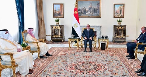 وصرح السفير بسام راضي، المتحدث الرسمي باسم رئاسة الجمهورية في مصر، بأن الأمير فيصل بن فرحان، نقل للرئيس تحيات خادم الحرمين الشريفين الملك سلمان بن عبد العزيز، وصاحب السمو الملكي الأمير محمد بن سلمان ولي العهد.