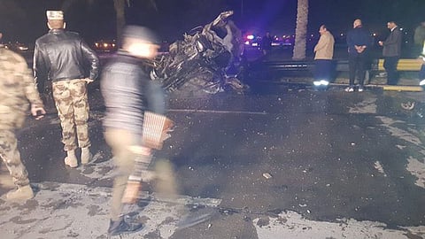 وذكر تليفزيون الإيراني أن مروحيات أمريكية شنت غارات جوية على مطار بغداد، وطريق قريب منه، أسفر عن مقتل سليماني، والمهندس؛ حيث استهدفت إحدى الغارات سيارة كانا يستقلانها مع آخرين، ما أسفر عن مقتلهما وآخرين.