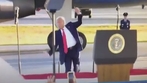 تفادى الرئيس الأمريكي دونالد ترامب السقوط أمام حشدٍ من مناصريه، في أول لقاء له أمام حشد من مؤيديه عقب ترشيحه بشكل رسمي من قبل الحزب الجمهوري لخوض الانتخابات الرئاسية المقبلة.