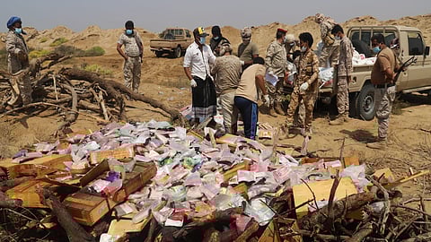 صورة من إتلاف الجيش اليمني شحنات كبيرة من المخدرات الحوثية