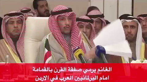 ونشر مجلس الأمة، عبر تويتر، مقطعًا مصورًا لكلمة الغانم أمام اجتماع الاتحاد البرلماني العربي.