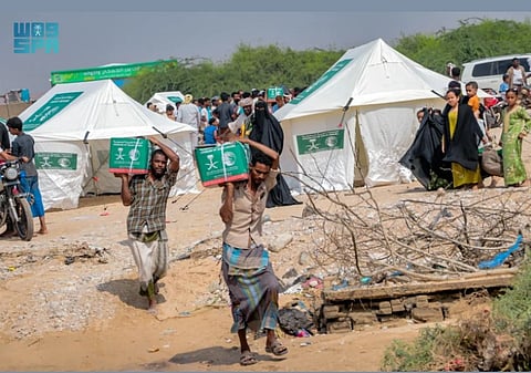 دشَّن مركز الملك سلمان للإغاثة والأعمال الإنسانية أمس، توزيع مساعدات إيوائية وغذائية طارئة للأسر المتضررة من الإعصار "تيج" في مديرية الريدة وقصيعر بمحافظة حضرموت.