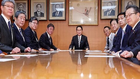 وقالت وكالة الأنباء اليابانية «كيودو»، إن الحكومة اليابانية بأكملها استقالت اليوم الأربعاء، مشيرة إلى أنه سيُعرف قريبًا التكوين الجديد للحكومة اليابانية بقيادة رئيس الوزراء، فوميو كيشيدا.