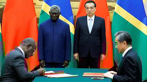 وقعت الحكومة الصينية اليوم الثلاثاء، اتفاقًا أمنيًا بشكل موسع مع جزر سليمان الواقعة في المحيط الهادئ؛ حيث أثارت الاتفاقيات مخاوف الحكومات الغربية، وعلى رأسها الولايات المتحدة، وذلك خوفًا من تواجد الجيش الصيني في تلك المنطقة، إذ تحولت «جزر سليمان» في الفترة الأخيرة لساحة تنافس بين واشنطن وبكين.