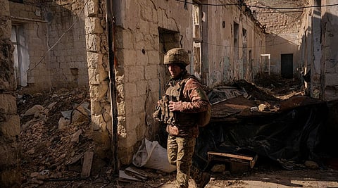 جندي أوكراني في قرية كريمسكي الواقعة على خط المواجهة في منطقة لوهانسك بشرق أوكرانيا.