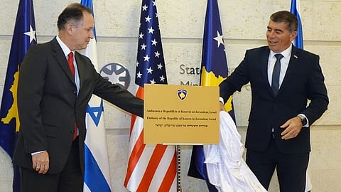 وقالت وزارة الخارجية الإسرائيلية إن الحفل شمل إزاحة الستار عن لوحة تذكارية سيتم وضعها عند مدخل سفارة كوسوفو في القدس لدى افتتاحها.