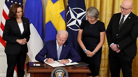 وقع الرئيس الأمريكي، جو بايدن، اليوم الثلاثاء، على موافقة واشنطن لانضمام السويد وفنلندا إلى حلف شمال الأطلسي «ناتو».