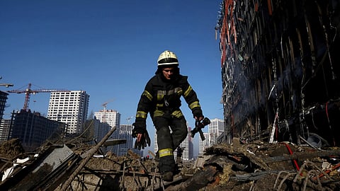 من جهتها، قالت خدمات الطوارئ على «فيسبوك»، إن قصفًا تسبّب باندلاع حريق في طبقات عدّة من المركز التجاري الواقع في منطقة بوديلسكي شمال غربي المدينة، وباندلاع النار في آليات عدة.