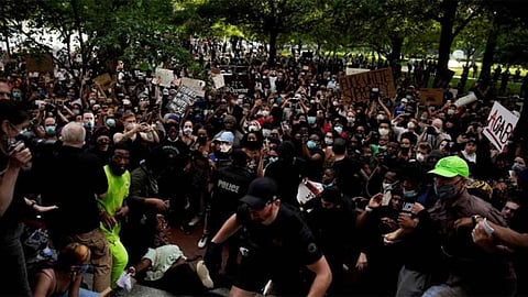 وتحوّلت مدينة مينيابوليس بؤرةً للعنف منذ أن قضى الأمريكي من أصول إفريقية جورج فلويد خلال عمليّة اعتقاله، بعدما قام شرطي بطرحه أرضًا وتثبيته لدقائق عدّة بينما كان يضغط بركبته على رقبته حتّى لفظ أنفاسه.