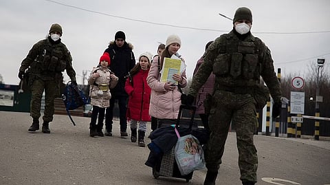وغردت المتحدثة صفاء مسهلي، عبر موقع تويتر، أن من بين الفارين أكثر من 150 ألف شخص من جنسية ثالثة، غير الأوكرانية والروسية.