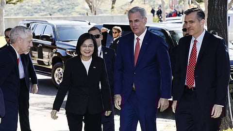 ورحب «مكارثي» الذي يأتي ثالثًا في ترتيب السلطة في الولايات المتحدة بحكم منصب، برئيسة تايوان خلال اجتماعهما في مكتبة رونالد ريجان الرئاسية في سيمي فالي بولاية كاليفورنيا بالقرب من لوس أنجلوس.