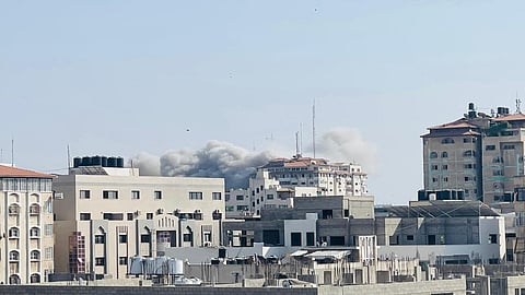 وأظهرت لقطات مصورة تعرض مبنى سكني في مدينة غزة للقصف.