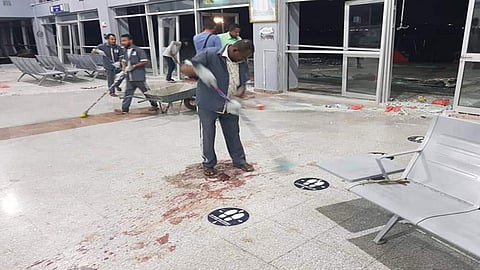 وكان وزير الصحة اليمني، قاسم بحيبح، قال في وقت سابق، إن «25 شهيدًا و110 جرحى ضحايا جريمة الإرهاب التي استهدفت المطار».