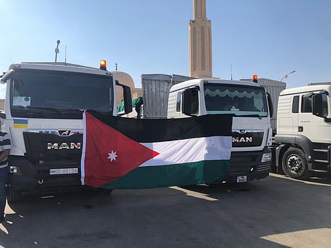سيَّرت الحكومة الأردنية اليوم 6 شاحنات من الأدوية والمعدات والاحتياجات الطبية والدوائية إلى الضفة الغربية وغزة.