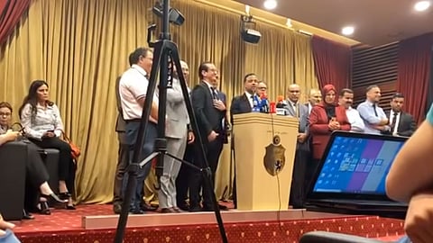 انسحب ممثلو وسائل الإعلام المحلية والأجنبية من المؤتمر الصحفي الذي عقدته كتلتا: قلب تونس، وائتلاف الكرامة، على خلفية تحريض رئيس كتلة الكرامة الداعم لحزب النهضة الإخواني سيف الدين مخلوف على بعض القنوات العربية الغائبة عن تغطية المؤتمر.