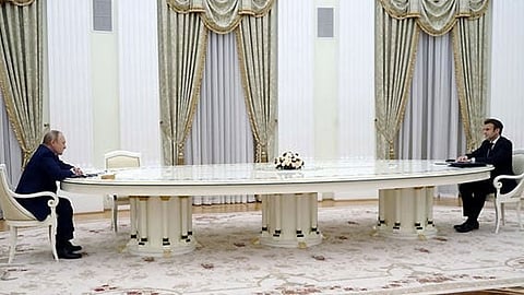 التقى الرئيس الفرنسي، إيمانيول ماكرون، اليوم الاثنين، نظيره الروسي، فلاديمير بوتين، خلال زيارة أجراها إلى موسكو، للتباحث بشأن الأزمة المتفاقمة على حدود أوروبا الشرقية.