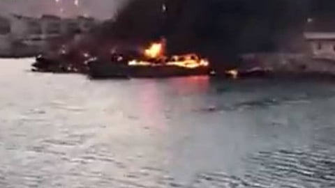 اندلع حريق هائل في ميناء عسلوية بجنوب إيران، فجر اليوم الثلاثاء، والتهمت النيران 7 سفن تجارية.