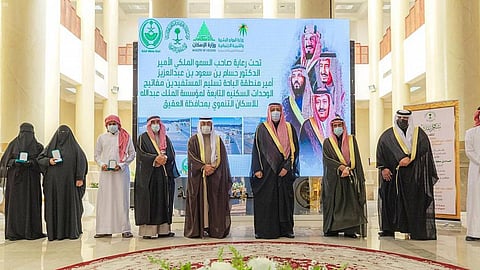 سلم الأمير الدكتور حسام بن سعود بن عبدالعزيز أمير منطقة الباحة رئيس اللجنة التنفيذية للإسكان التنموي بالمنطقة في الإمارة اليوم 100 وحدة سكنية بمجمع إسكان الملك عبدالله بمحافظة العقيق, بقيمة إجمالية بلغت أكثر من 50 مليون ريال.