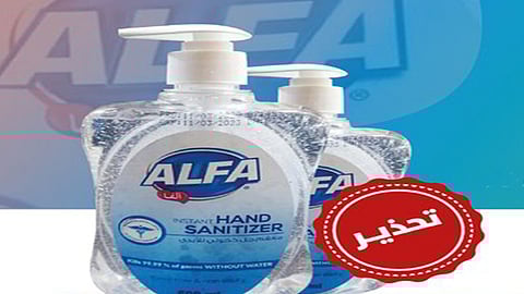 حذرت الهيئة العامة للغذاء والدواء من معقم اليدين « Alfa,Instant Hand Sanitizing»؛ لاحتوائه على نسبة عالية من الميثانول.