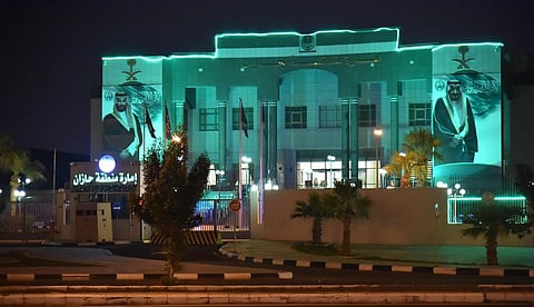 أكملت إمارة منطقة جازان استعداداتها للاحتفال بمناسبة ذكرى اليوم الوطني للمملكة الـ89، تحت شعار «همة حتى القمة»؛ حيث توشحت واجهات مبنى الإمارة بصور القيادة الحكيمة تتقدمها صورة خادم الحرمين الشريفين الملك سلمان بن عبدالعزيز، والأمير محمد بن سلمان ولي العهد، نائب رئيس مجلس الوزراء، وزير الدفاع.