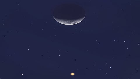أوضحت الجمعية الفلكية بجدة، أنَّ مراقبي السماء في السعودية والوطن العربي يستعدون مساء اليوم السبت لرصد اقتران مميَّز بين القمر وكوكب المريخ، مشاهد بالعين المجردة حيث سيفصل بينهما (0.1) درجة فقط، وهذه مسافة ظاهرية قريبة ليظهرا معًا في نفس مجال رؤية المناظير أو التلسكوبات.