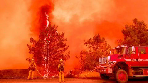 واتخذت المعركة ضد حريق «كالدور» المشتعل بالقرب من «ساوث ليك تاهو»، في جبال سييرا نيفادا، منعطفا نحو الأسوأ يوم الأحد، عندما قال مسؤولون إن نشاط الحرائق كان أكثر ضراوة مما كان متوقعا، بحسب صحيفة «لوس أنجلوس تايمز».
