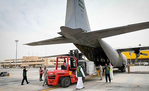 غادرت مطار الملك خالد الدولي اليوم الطائرة الإغاثية السعودية الخامسة متجهة إلى مطار بورتسودان الدولي تحمل على متنها 10 أطنان من السلال الغذائية والمواد الإيوائية والطبية.