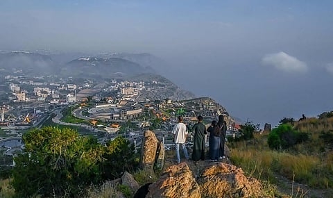 غطّى الضباب الكثيف، اليوم، جبال وغابات ومتنزهات سراة منطقة الباحة في مشهد أخّاذ.