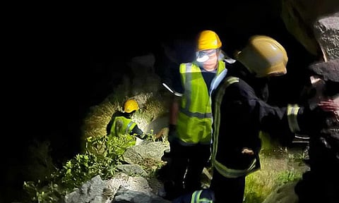 تمكنت فرق الدفاع المدني في محافظة تنومة بمنطقة عسير، من إنقاذ شخص سقط من منحدر جبلي.