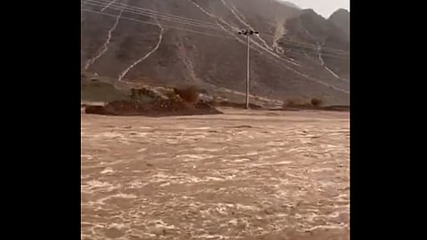 ويوضح المقطع جريان السيول بـ"العيص" جراء غزارة الأمطار في إحدى الأودية.