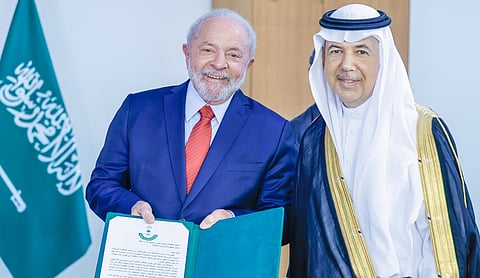 قدَم سفير خادم الحرمين لدى جمهورية البرازيل الاتحادية فيصل بن إبراهيم غلام، أوراق اعتماده سفيرًا لدى جمهورية البرازيل الاتحادية، للرئيس البرازيلي لولا دا سيلفا، خلال استقباله في القصر الرئاسي في العاصمة برازيليا.