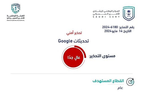 أصدر المركز الوطني الإرشادي للأمن السيبراني، اليوم الثلاثاء، تحذيرًا أمنيًا «عالي الخطورة» بخصوص تحديث أمني على منتجات جوجل.