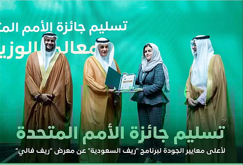 تسلّم وزير البيئة والمياه والزراعة المهندس عبدالرحمن بن عبدالمحسن الفضلي، جائزة الأمم المتحدة لأعلى معايير الجودة، التي حصل عليها برنامج التنمية الريفية الزراعية المستدامة "ريف السعودية"، لتميزه، ونجاحه في تنظيم معرض "ريف فالي"، الذي أقيم بمحافظة الدرعية في سبتمبر الماضي، كما دشّن معاليه برنامج ريادة الأعمال لـبرنامج "ريف السعودية".
