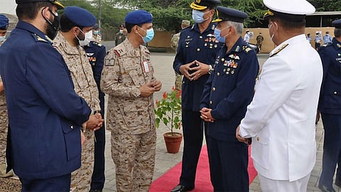 و كان في استقباله نائب رئيس الأركان الجوية الباكستانية الفريق سيد نعمان علي هاي, والملحق العسكري السعودي لدى جمهورية باكستان الإسلامية اللواء الطيار الركن عوض بن عبدالله الزهراني, وقائد مجموعة القوات الجوية الملكية السعودية المشاركة في التمرين المقدم الطيران الركن فايح بن عبدالرحمن الروقي.