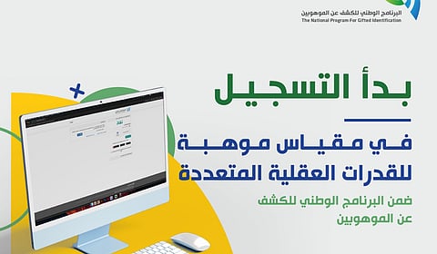 دعت الإدارة العامة للتعليم بمنطقة جازان الطلاب والطالبات للتسجيل في البرنامج الوطني للكشف عن الموهوبين في عامه الـ 15 ، الذي تنفذه مؤسسة الملك عبدالعزيز ورجاله للموهبة والإبداع "موهبة" بالشراكة الفاعلة مع وزارة التعليم، وبالتعاون مع هيئة تقويم التعليم ممثلة في مركز قياس.