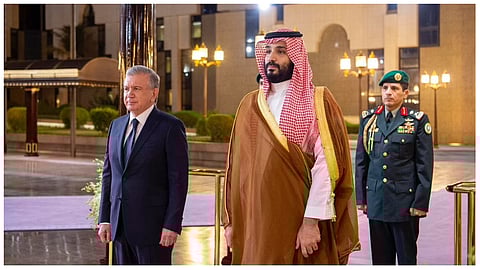 إثر ذلك عقد سمو ولي العهد ورئيس جمهورية أوزبكستان جلسة مباحثات رسمية، جرى خلالها استعراض أوجه العلاقات الثنائية بين البلدين وفرص التعاون في شتى المجالات، بالإضافة إلى استعراض عدد من الموضوعات ذات الاهتمام المشترك.