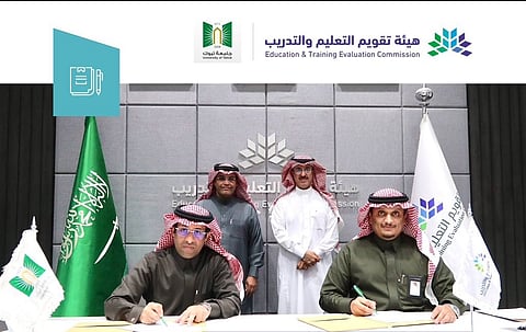 وقعت هيئة تقويم التعليم والتدريب ممثلة في المركز الوطني للتقويم والاعتماد الأكاديمي "اعتماد" اليوم، اتفاقية لاعتماد 12 برنامجًا أكاديميًا لجامعة تبوك، وذلك بحضور معالي رئيس مجلس إدارة الهيئة، الدكتور خالد بن عبدالله السبتي، ومعالي رئيس جامعة تبوك الدكتور عبدالله بن مفرح الذيابي، في مقر الهيئة بمدينة الرياض.