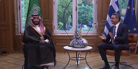 عقد صاحب السمو الملكي ولي العهد الأمير محمد بن سلمان، جلسة مباحثات رسمية مع رئيس وزراء اليونان كيرياكوس ميتسوتاكيس في قصر الحكومة بأثينا.