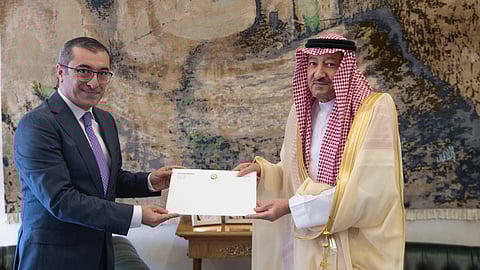 تسلم الرسالة نائب وزير الخارجية المهندس وليد بن عبدالكريم الخريجي، خلال استقباله بديوان الوزارة، اليوم، القائم بأعمال سفارة جمهورية أذربيجان لدى المملكة عمران صديقوف.