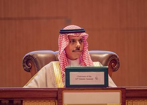 وأضاف: «إن المملكة تؤمن بأهمية ما يجمعنا من روابط الدين والجوار، وتبسط يدها دوما للحوار وحل الخلافات بالطرق السلمية. ومن هذا المنطلق، أجرت لأكثر من عامين عدة جولات للحوار مع الأشقاء في إيران في كل من بغداد ومسقط ثم مؤخرًا في بكين. وقد تكللت هذه المباحثات بالاتفاق على إعادة العلاقات الدبلوماسية بين البلدين على أساس احترام مبادئ ومقاصد ميثاق الأمم المتحدة ومنظمة التعاون الإسلامي، وفي طليعتها احترام سيادة الدول وعدم التدخل في شؤونها الداخلية، وحسن الجوار وحل الخلافات بالحوار». متطلعاً إلى أن يعزز هذا الاتفاق من أمن واستقرار منطقة الخليج العربي، ويدعم مسيرة العمل الإسلامي المشترك.