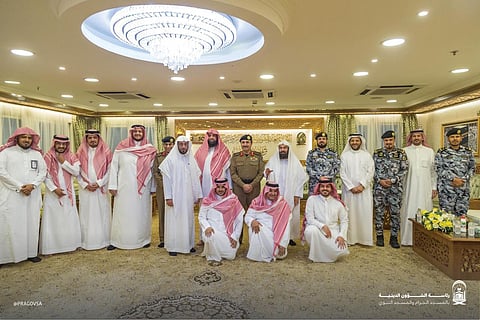 أقامت رئاسة الشؤون الدينية للمسجد الحرام والمسجد النبوي؛ إفطارًا رمضانيًا تكريمًا للجهات الأمنية العاملة في المسجد الحرام، بحضور رئيس الشؤون الدينية للمسجد الحرام والمسجد النبوي، الشيخ الدكتور عبدالرحمن السديس، والرئيس العام لهيئة الأمر بالمعروف والنهي عن المنكر، الشيخ الدكتور عبدالرحمن السند، ومدير الأمن العام الفريق محمد البسامي، والمهندس ظافر الشهراني، الرئيس التنفيذي للهيئة العامة لشؤون الحرمين، وقيادات المنظومة الأمنية والدينية، وقيادات الهيئة العامة للحرمين الشريفين؛ بمكتب رئيس الشؤون الدينية بالمسجد الحرام.