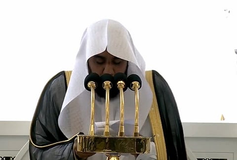 وأضاف خلال خطبة الجمعة بالمسجد الحرام أن المؤمن مأمور أن ينصر دينه وأن ينصر إخوانه، ومن هذا المنطلق جاء التوجيه الكريم من لدن خادم الحرمين الشريفين الملك سلمان بن عبد العزيز آل سعود، وصاحب السمو الملكي الأمير محمد بن سلمان بن عبد العزيز آل سعود، ولي العهد رئيس مجلس الوزراء، بحملة وطنية لجمع التبرعات لنصرة الأشقاء في فلسطين.