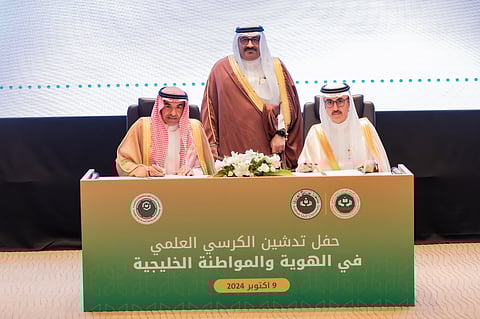 دشن مكتب التربية العربي لدول الخليج وجامعة الخليج العربي الكرسي العلمي المشترك في الهوية والمواطنة الخليجية، بحضور معالي الدكتور محمد بن مبارك جمعة وزير التربية والتعليم، رئيس مجلس أمناء مجلس التعليم العالي بمملكة البحرين، ومعالي الدكتور عبد الرحمن بن محمد العاصمي المدير العام لمكتب التربية العربي لدول الخليج، ومعالي الدكتور سعد بن سعود آل فهيد رئيس جامعة الخليج العربي، في قاعــة صاحــب السمـــو الملكي الأمـــــير عبـد العزيــز بـن فهـد بـن عبد العزيــز آل سعـــود في مركز الأميرة الجوهرة بنت إبراهيم البراهيــم للطب الجزيئي وعلوم المورثات والأمراض الوراثية.