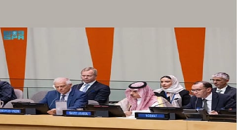 وشدد وزير الخارجية على أن قيام الدولة الفلسطينية المستقلة حقٌ أصيل وأساس للسلام، وليس نتيجة نهائية يتم التفاوض عليها ضمن عملية سياسية بعيدة المنال. وقال سموه: "نُؤكد تقديرنا للدول التي اعترفت بفلسطين مؤخراً، وندعو كافة الدول للتحلي بالشجاعة واتخاذ ذات القرار، والانضمام إلى الإجماع الدولي المتمثّل بـ (149) دولة مُعترفة بفلسطين. إنّ تنفيذ حلّ الدولتين هو الحل الأمثل لكسر حلقة الصراع والمعاناة، وإنفاذ واقع جديد تنعم فيه كافة المنطقة، بها فيها إسرائيل، بالأمن والتعايش".
